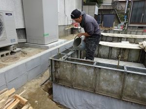 立上りのコンクリート打設です。天端を養生して作業終了。
