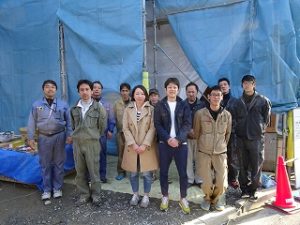 お施主様と最後に記念撮影をして本日終了、大工さんご苦労様でした。