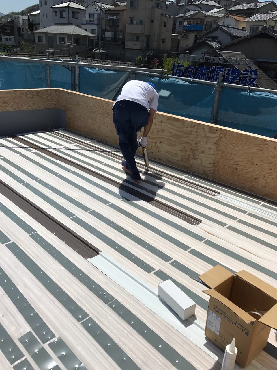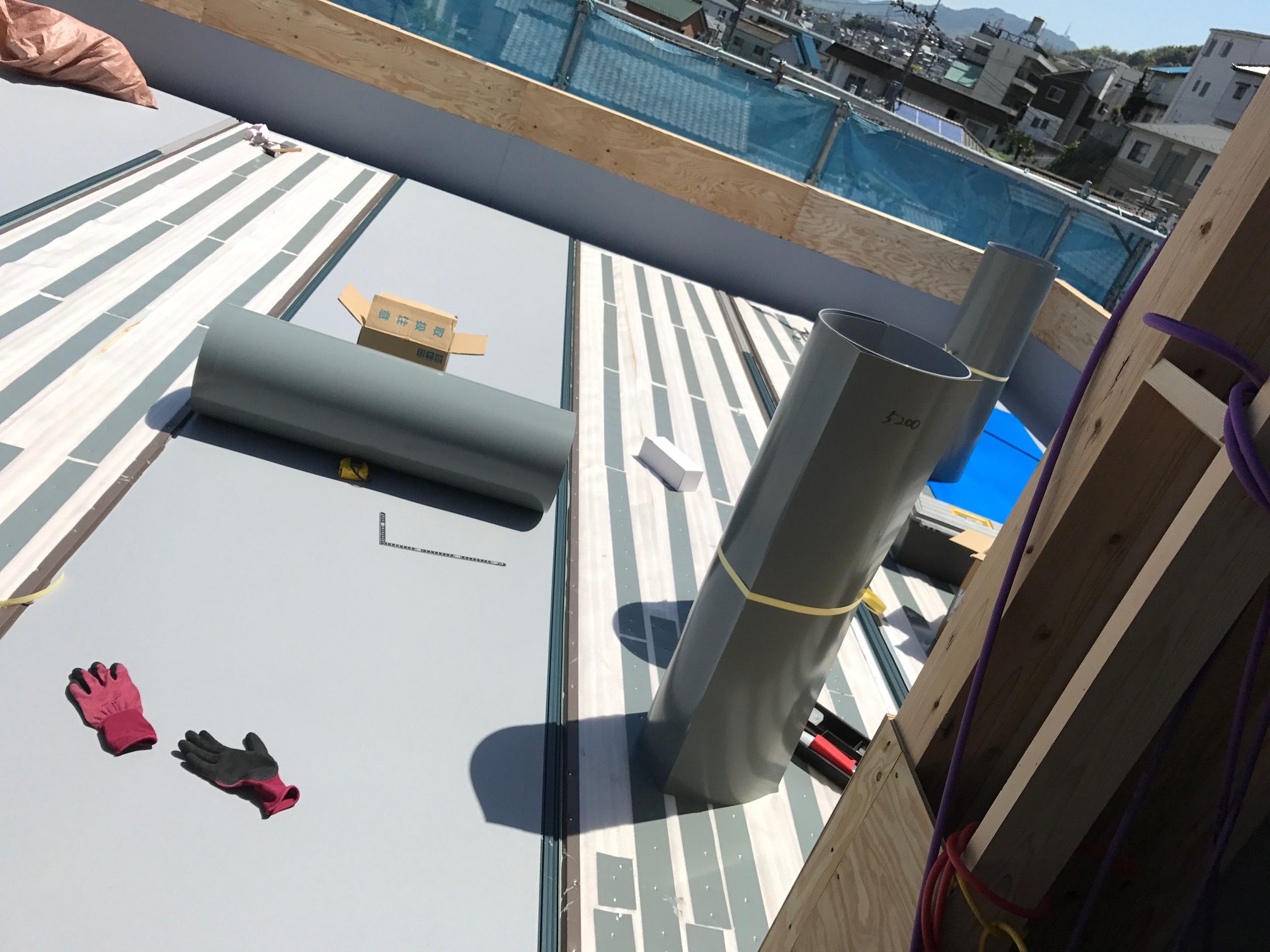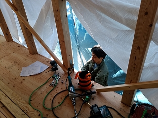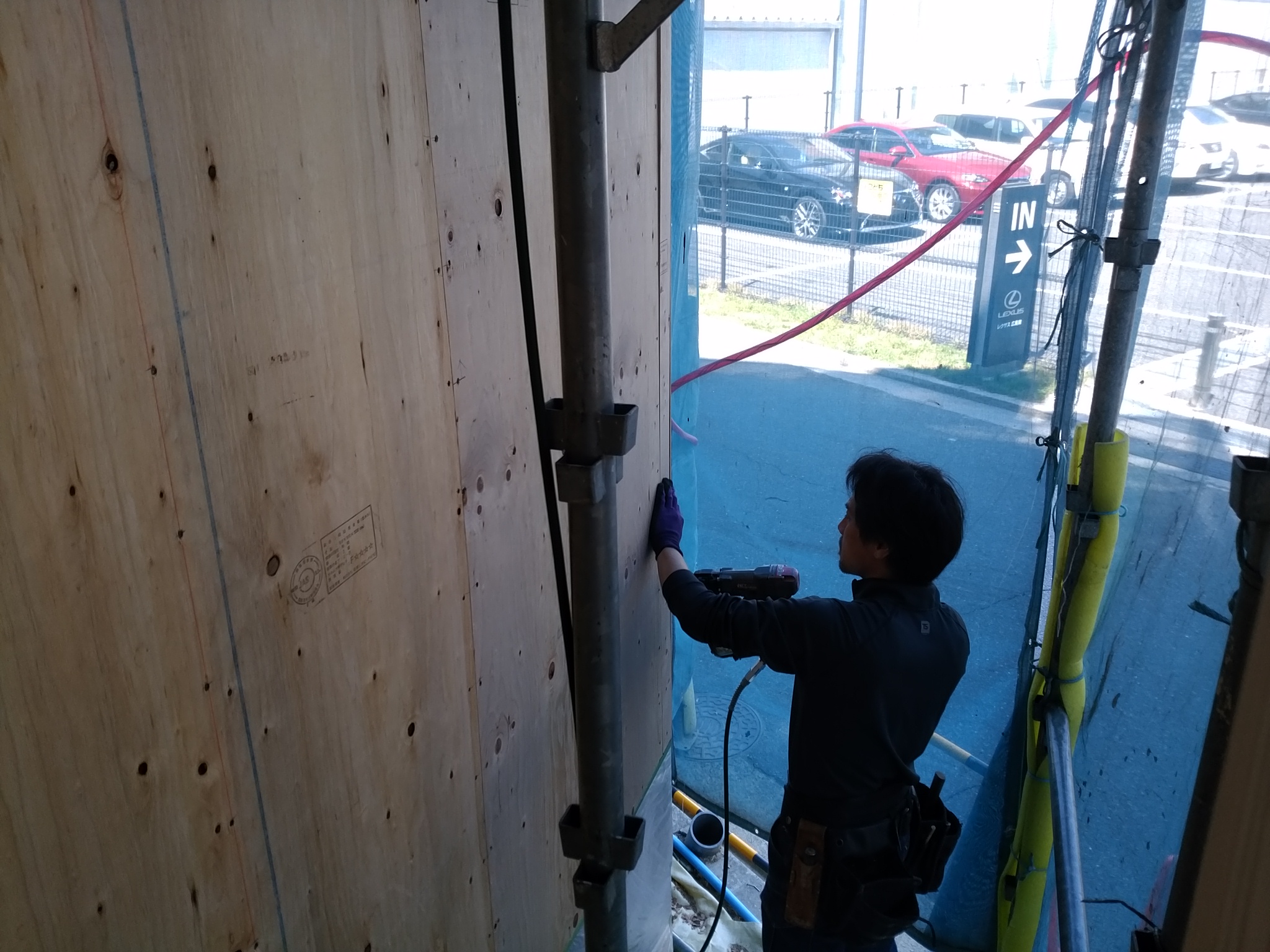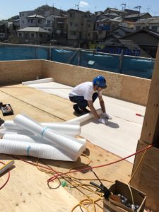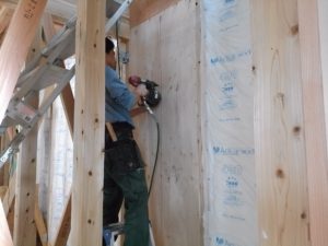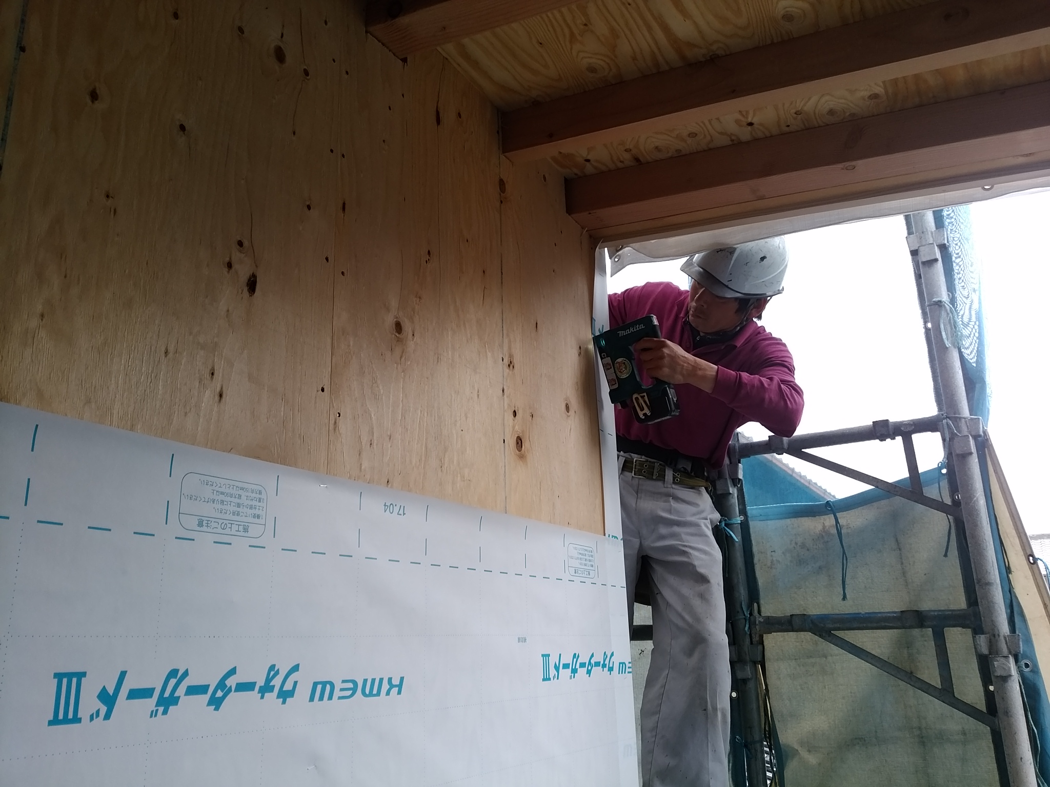 外部は合板の施工が終わり、いよいよ仕上げに入ります。