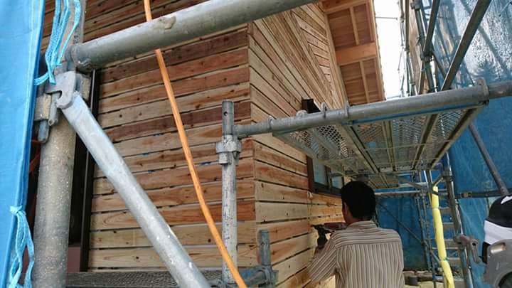 安芸高田市O様邸は、外部の下塗りを行っています。