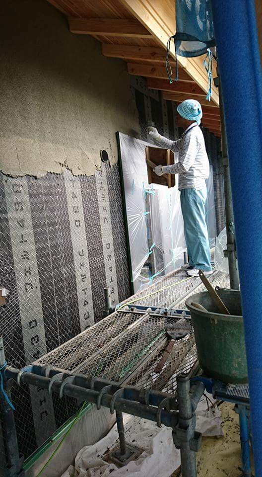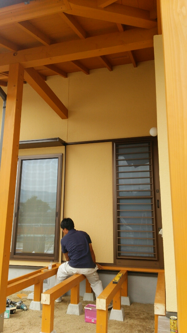 安芸高田市O様邸は外部の吹付も終わり