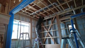 広島工務店 1階階段取付け、2階設備配管状況です by専務