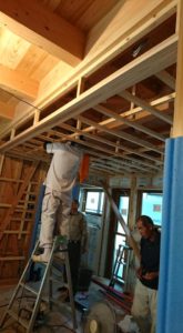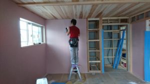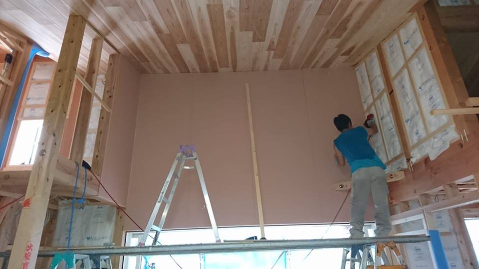 9月5日(水)1階壁ボード貼り、ロフト壁板張り状況です。
