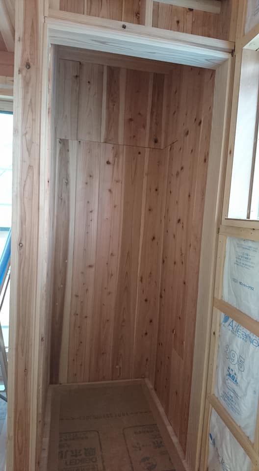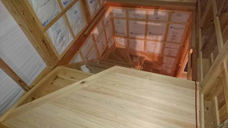 9月1日(土)1階階段取付け及2階WIC杉板張り状況です。