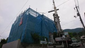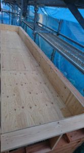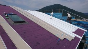 6月22日(金)屋根材料荷揚げ・ガルバニゥム鋼板屋根葺き及木工事金物取付けを施工しました。