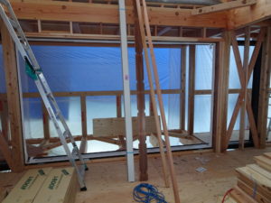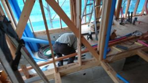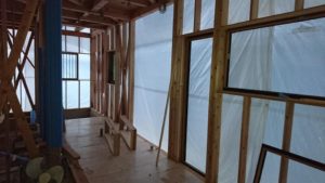 7月9日(月)ロフトサッシュ取付け・サッシュ廻り防水テープ張り・土台水切り取付け・電気配線