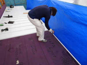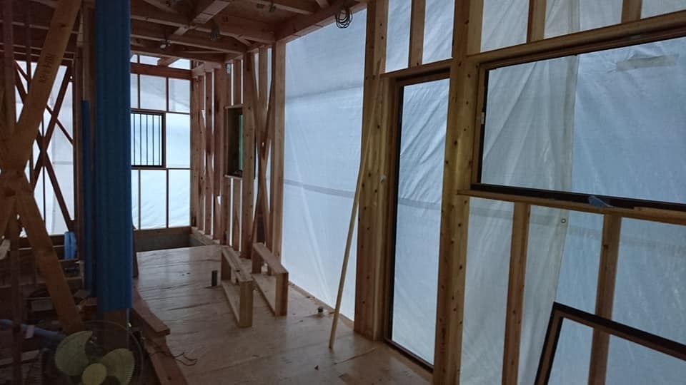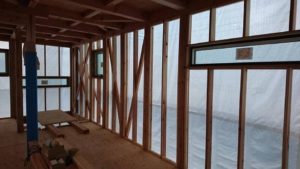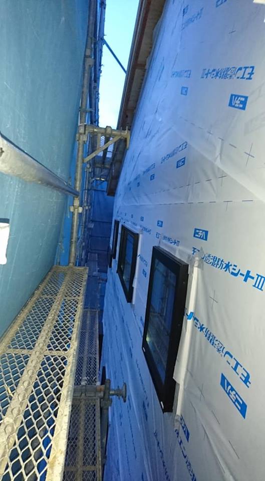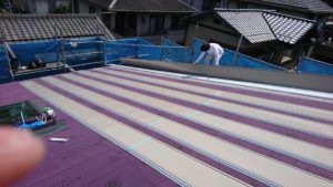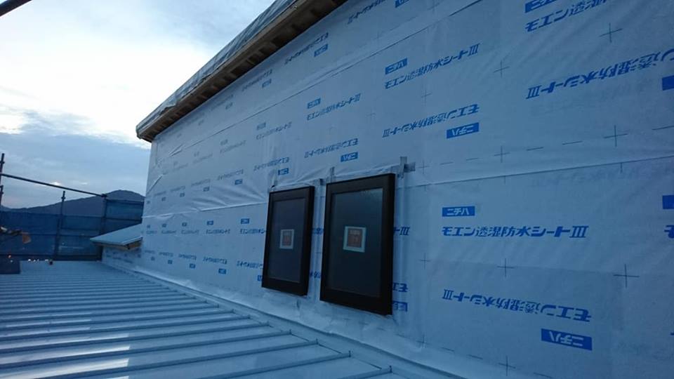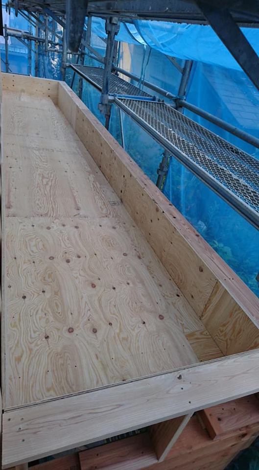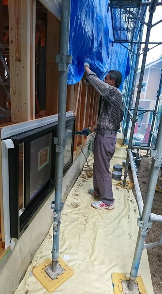 広島工務店 透湿防水シート張り・玄関上屋根庇木下地組 by専務