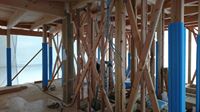 6月18日(月)筋違及間柱取付け状況です。屋根(ガルバニゥム鋼板張り)の寸法取り完了