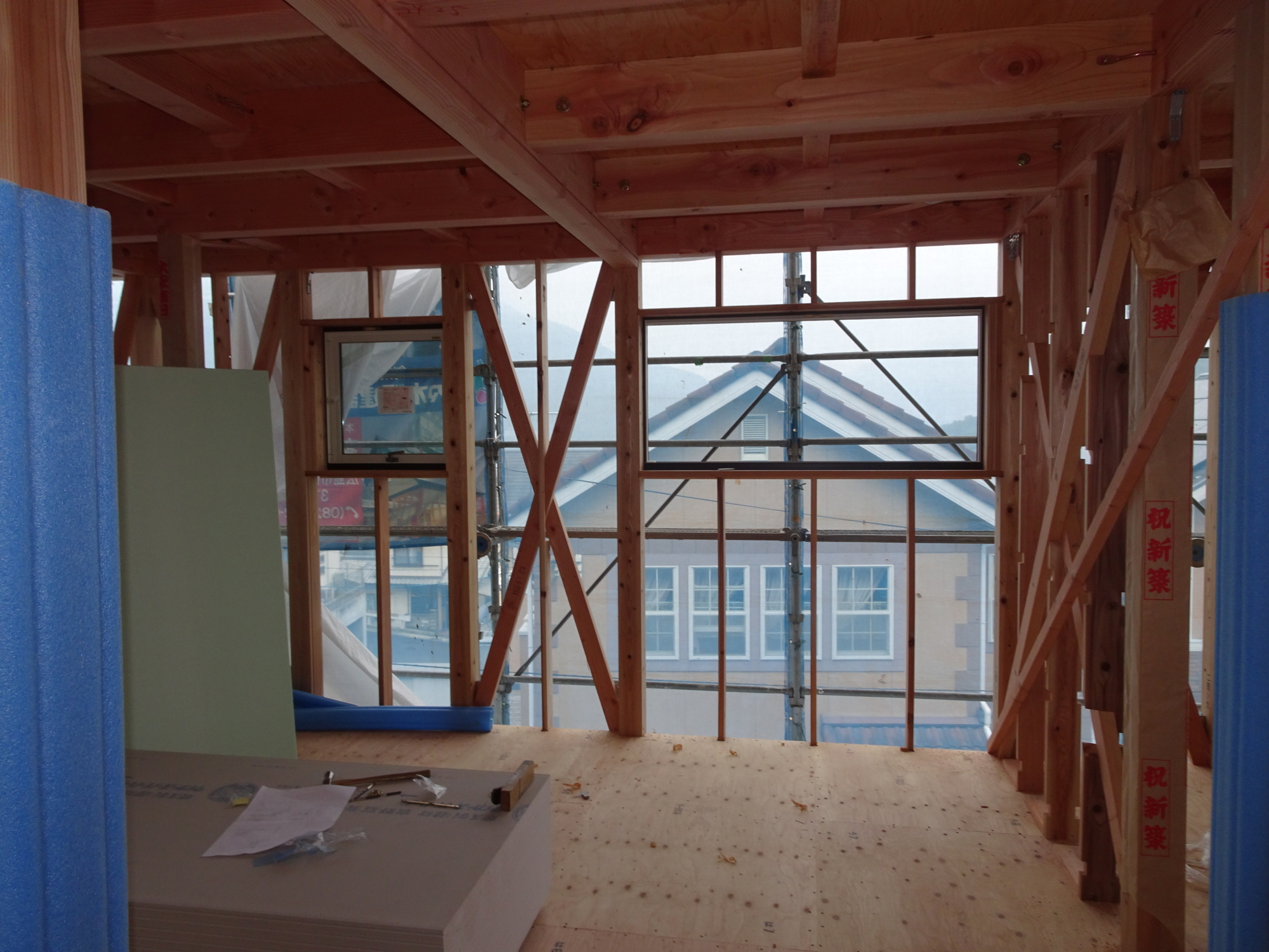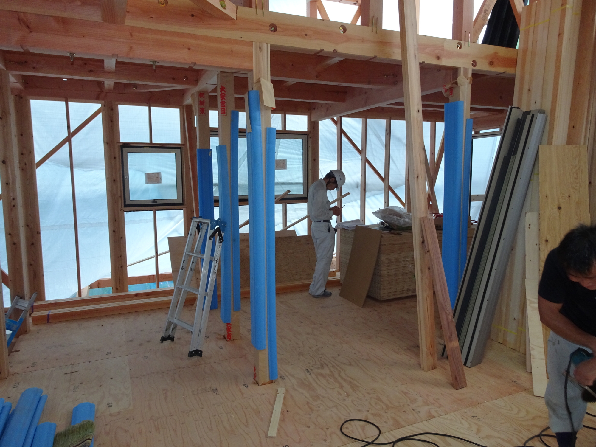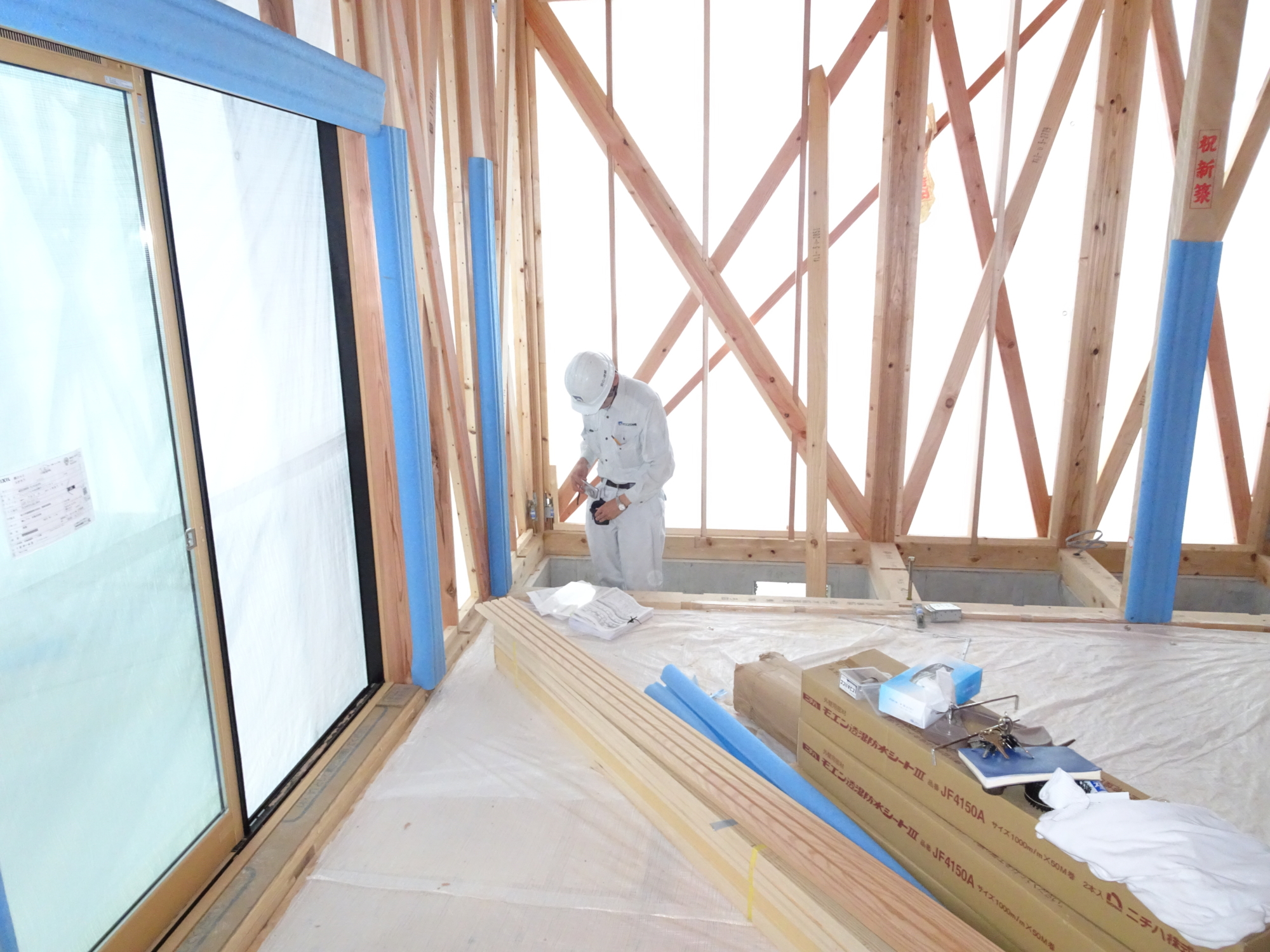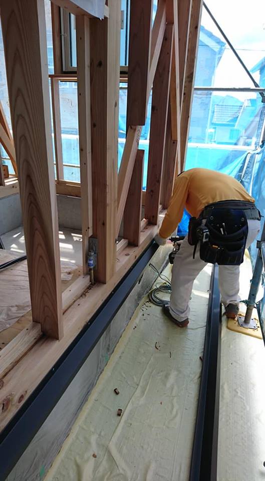 6月20日(水)2階窓台取付け状況です。内部壁当社の標準仕様は真壁ですが