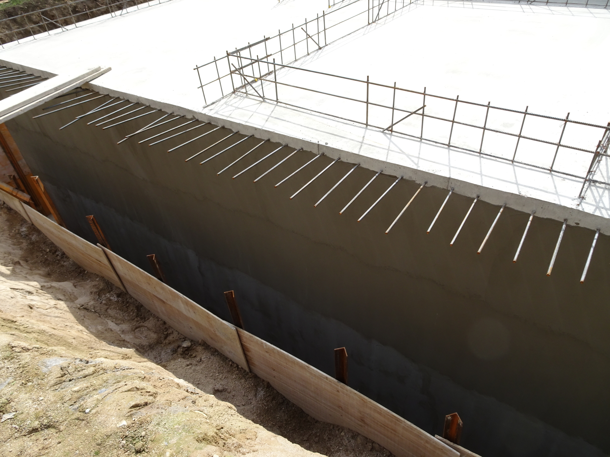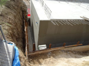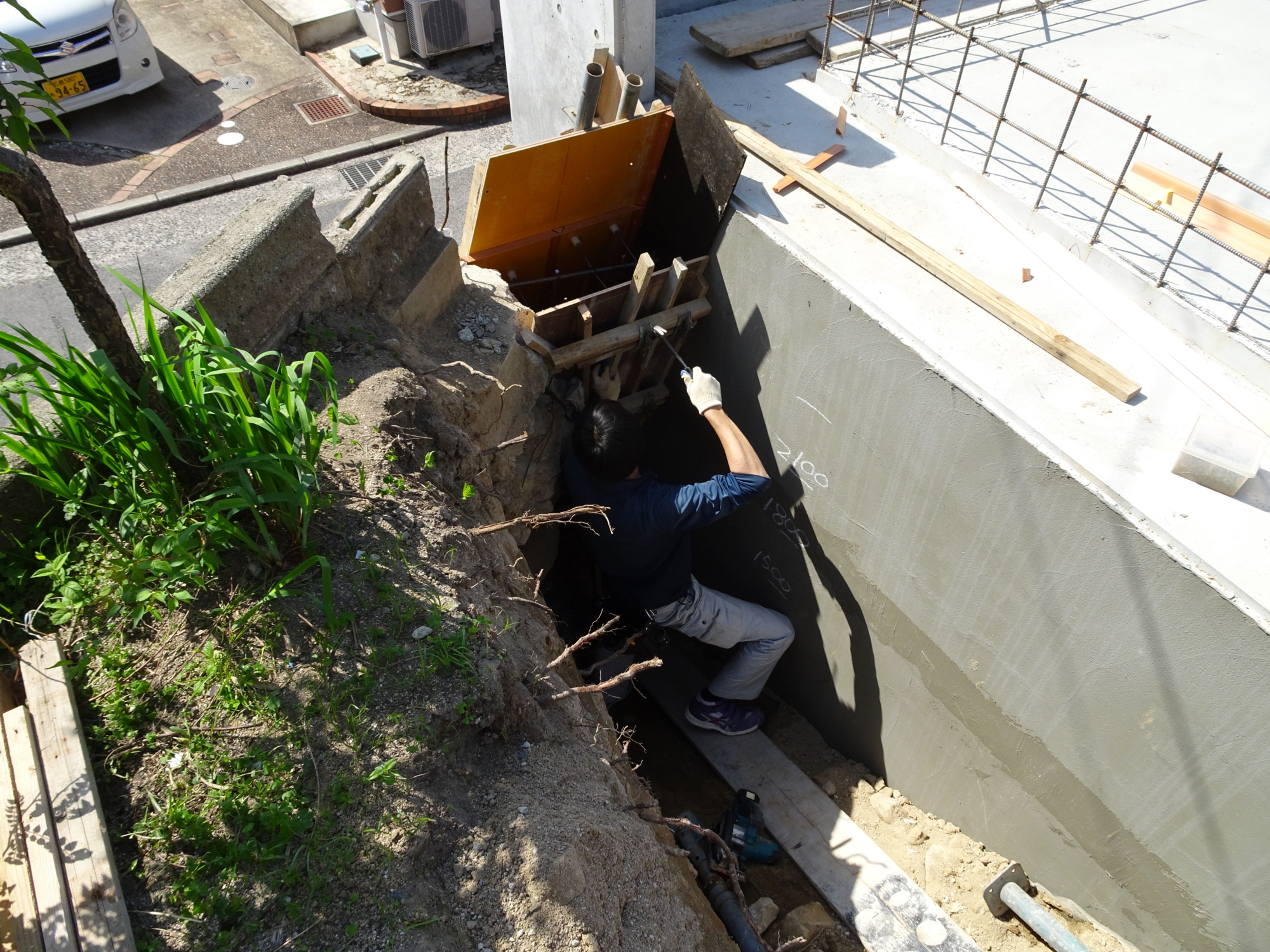 掘り込み車庫の外壁塗膜防水を施工してます。
