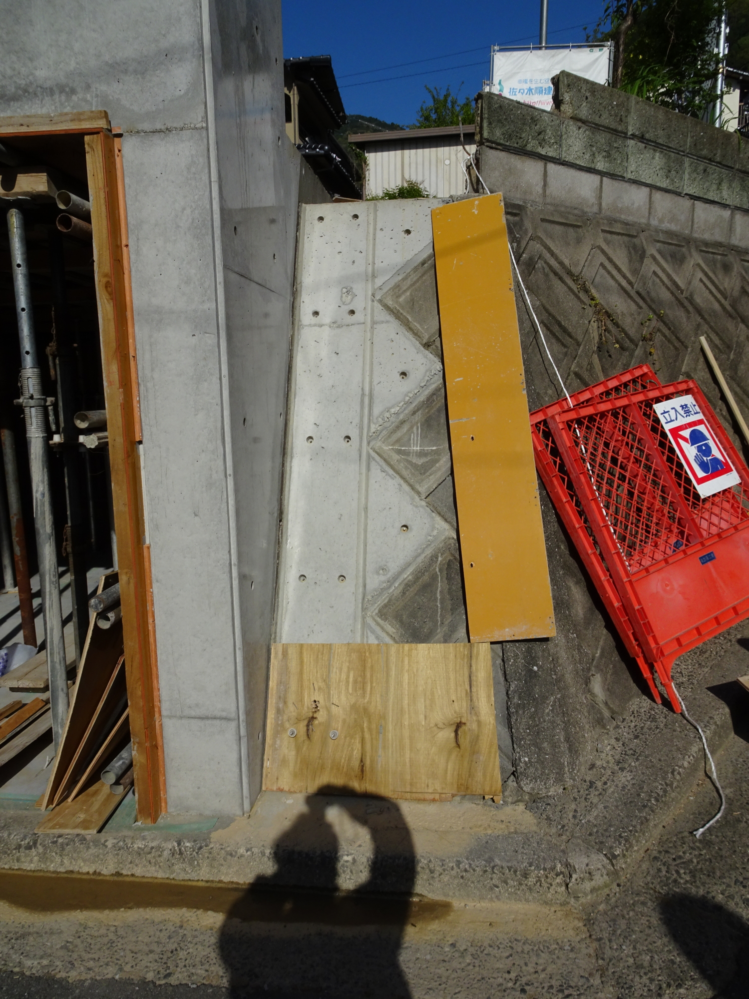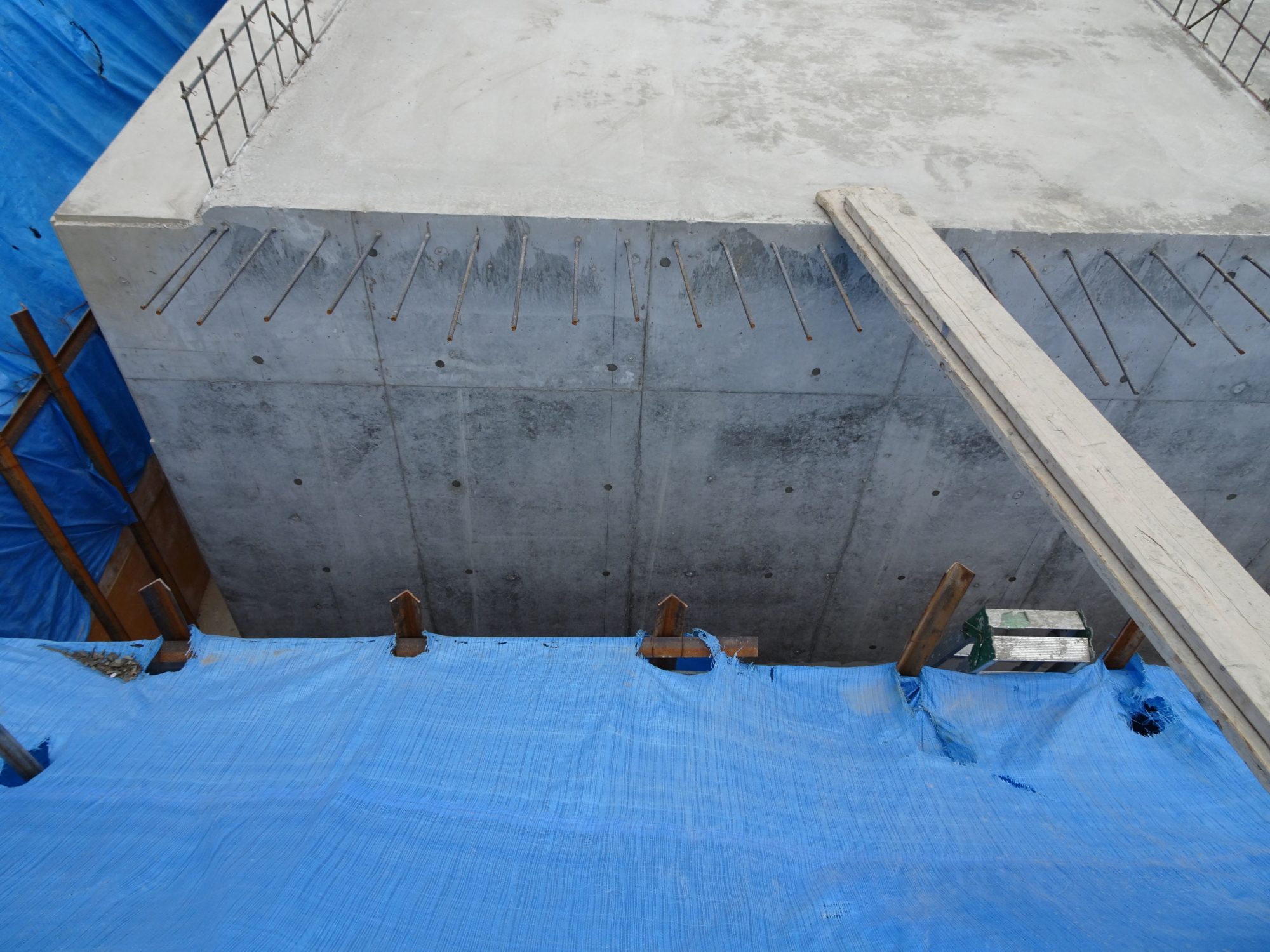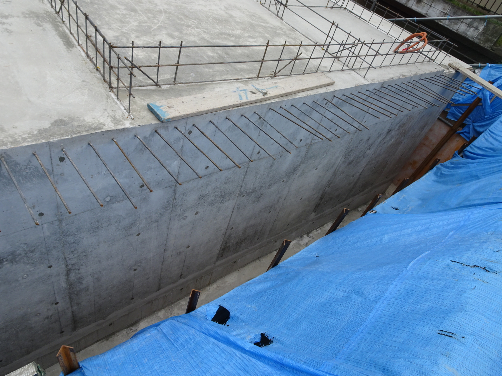 4月10日(火) 掘り込み車庫外壁側型枠せき板外しをしました。