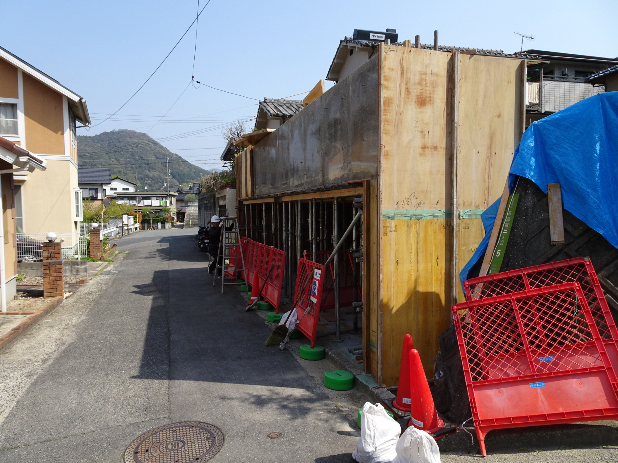 しかし今回は間口スパンが9500ですので、安全を期して5月末に支柱撤去しようと思います。
