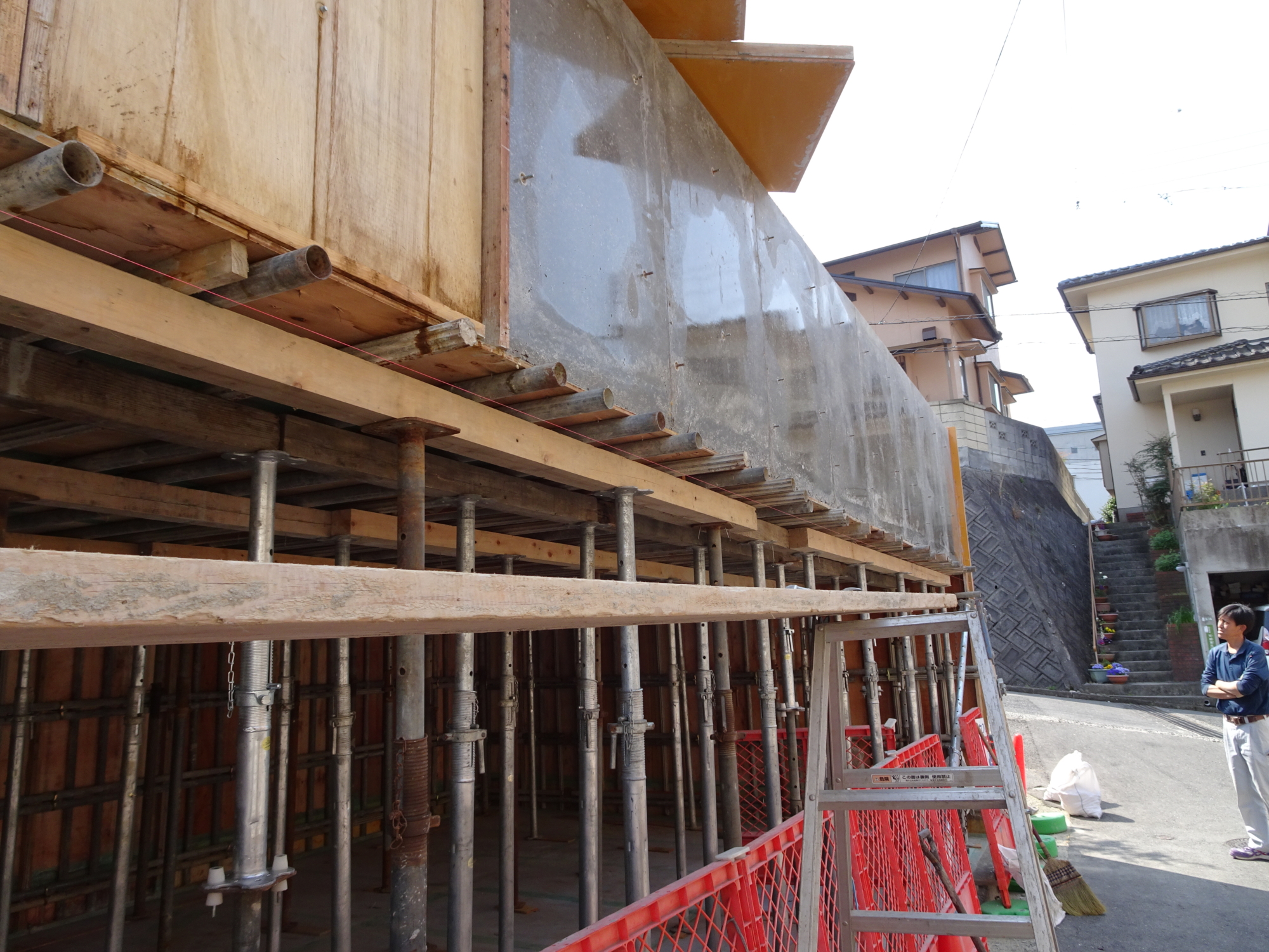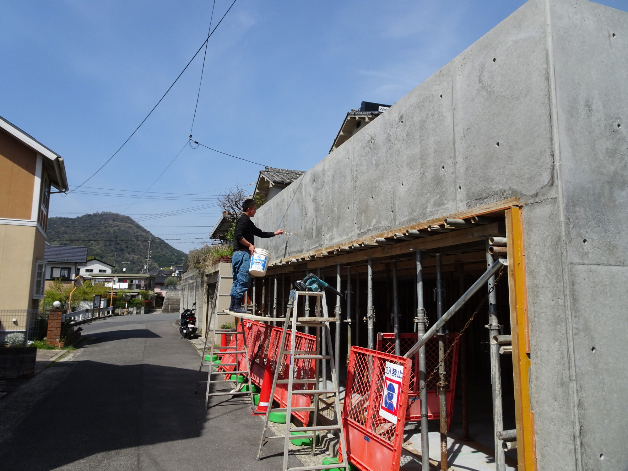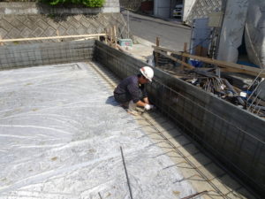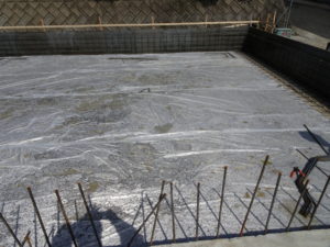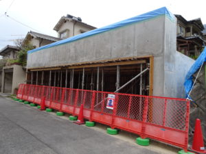 4月4日(水)にコンクリート打設しました。せき板の最小存置期間5日間又は、コンクリートの