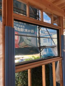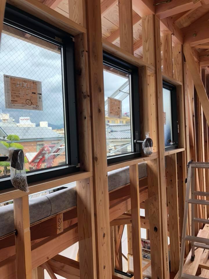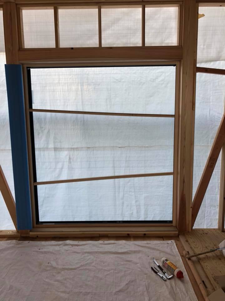 西本浦町のM様邸ですが、昨日は1階の窓枠とサッシの取付を行いました。