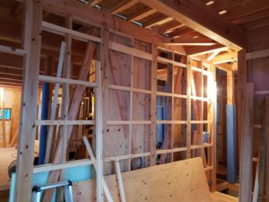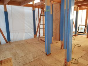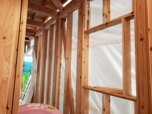 府中のT様邸新築工事は、壁断熱材入れと壁下地をしています。