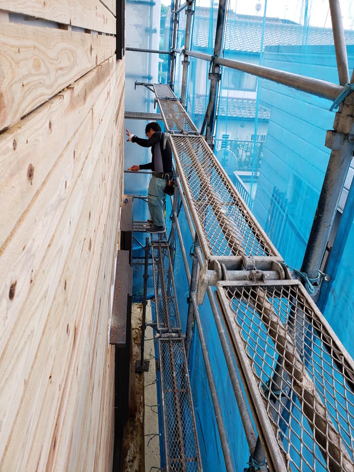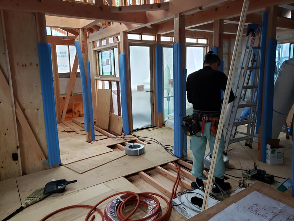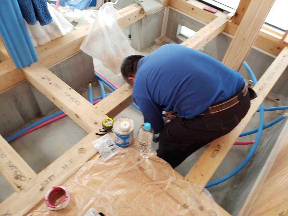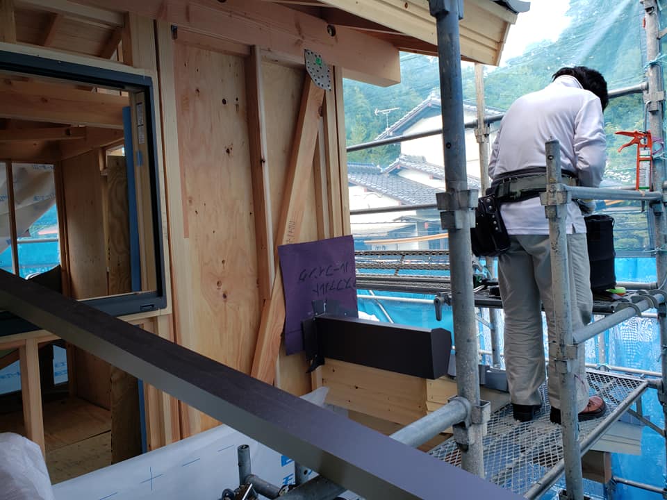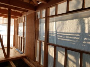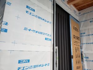 広島 木の家 「防水テープ張り、透湿防水シート張り」