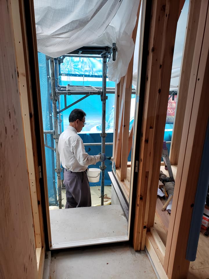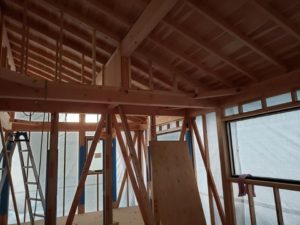 府中のT様邸新築工事は、昨日大工さんにサッシ枠組をしてもらいました。