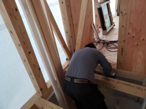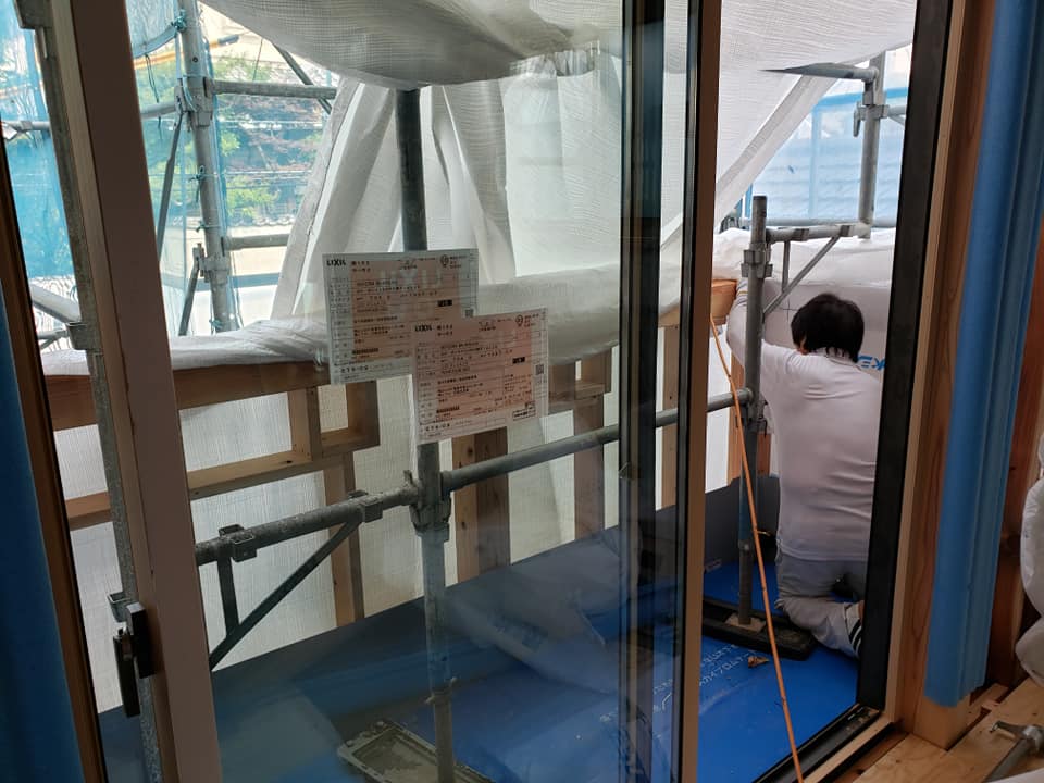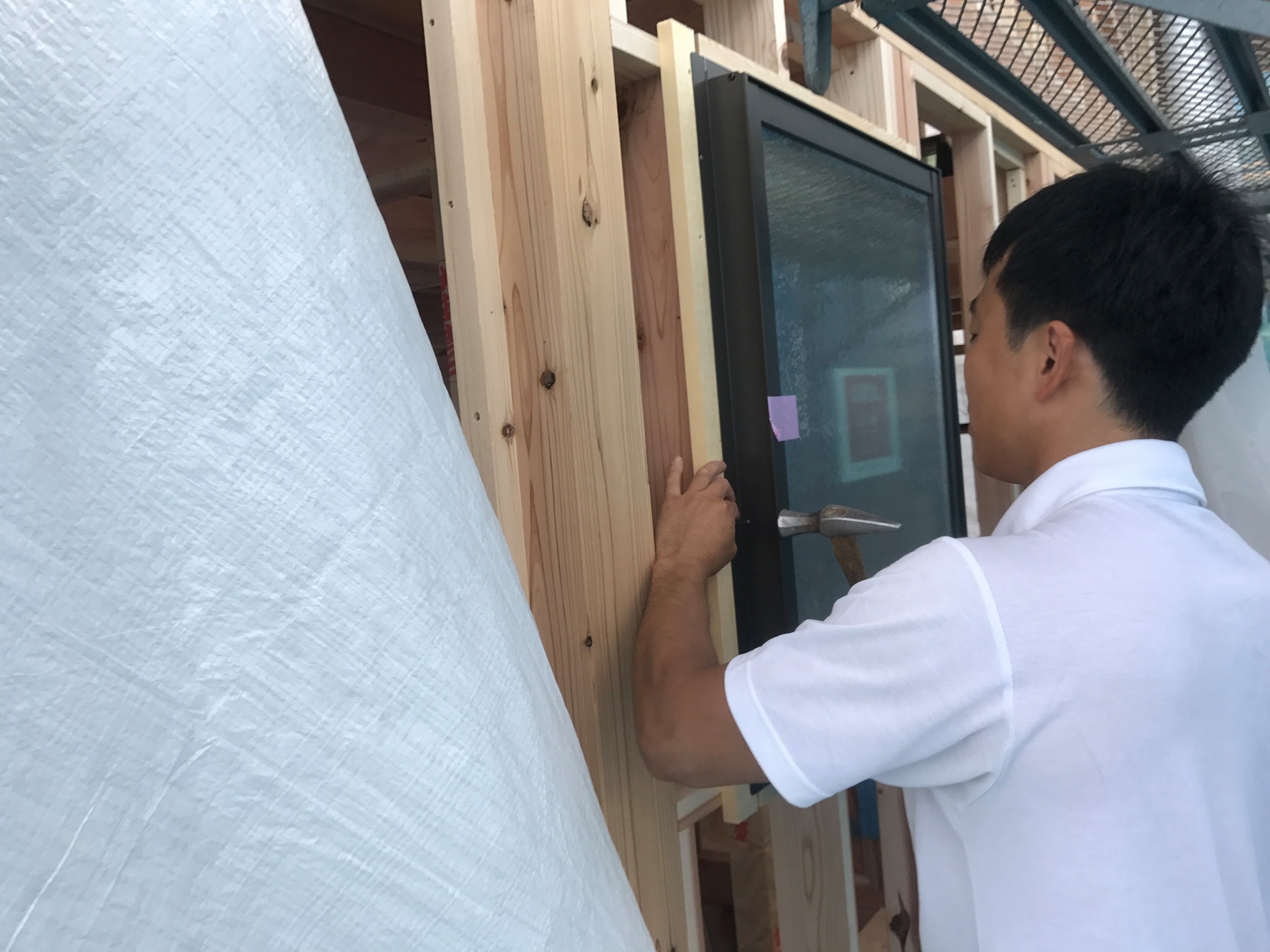 府中のT様邸新築工事は、大工さんに2階サッシの取付けをしてもらいました。
