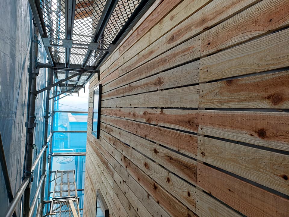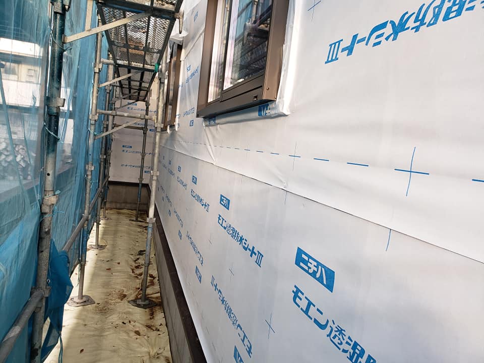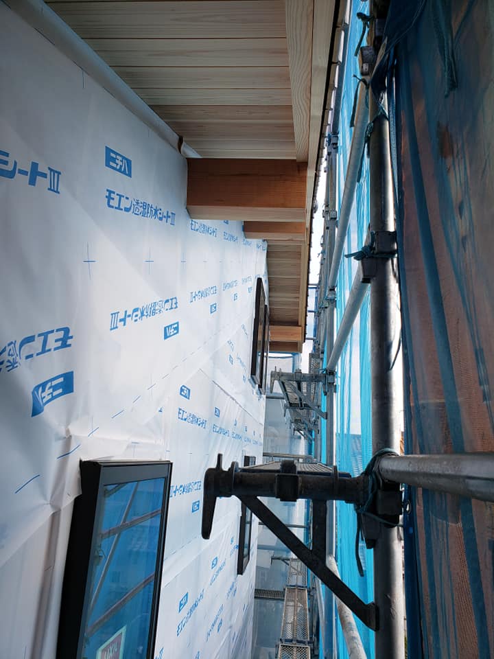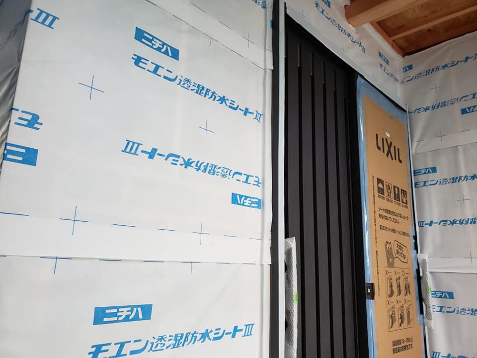 防水テープ張りと透湿防水シートを張ってもらいました。