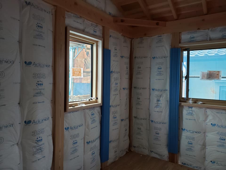 壁の断熱材は、高性能グラスウールのアクリアネクストを使用しています。