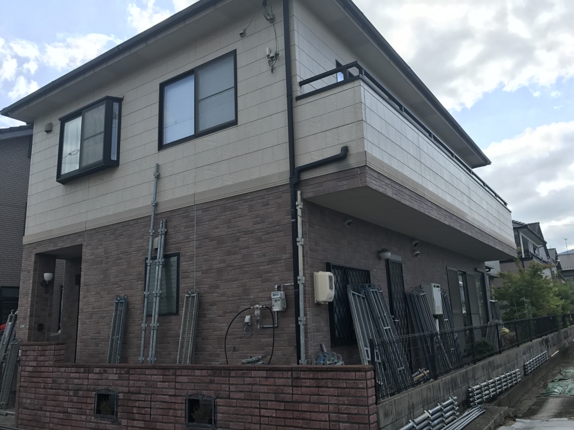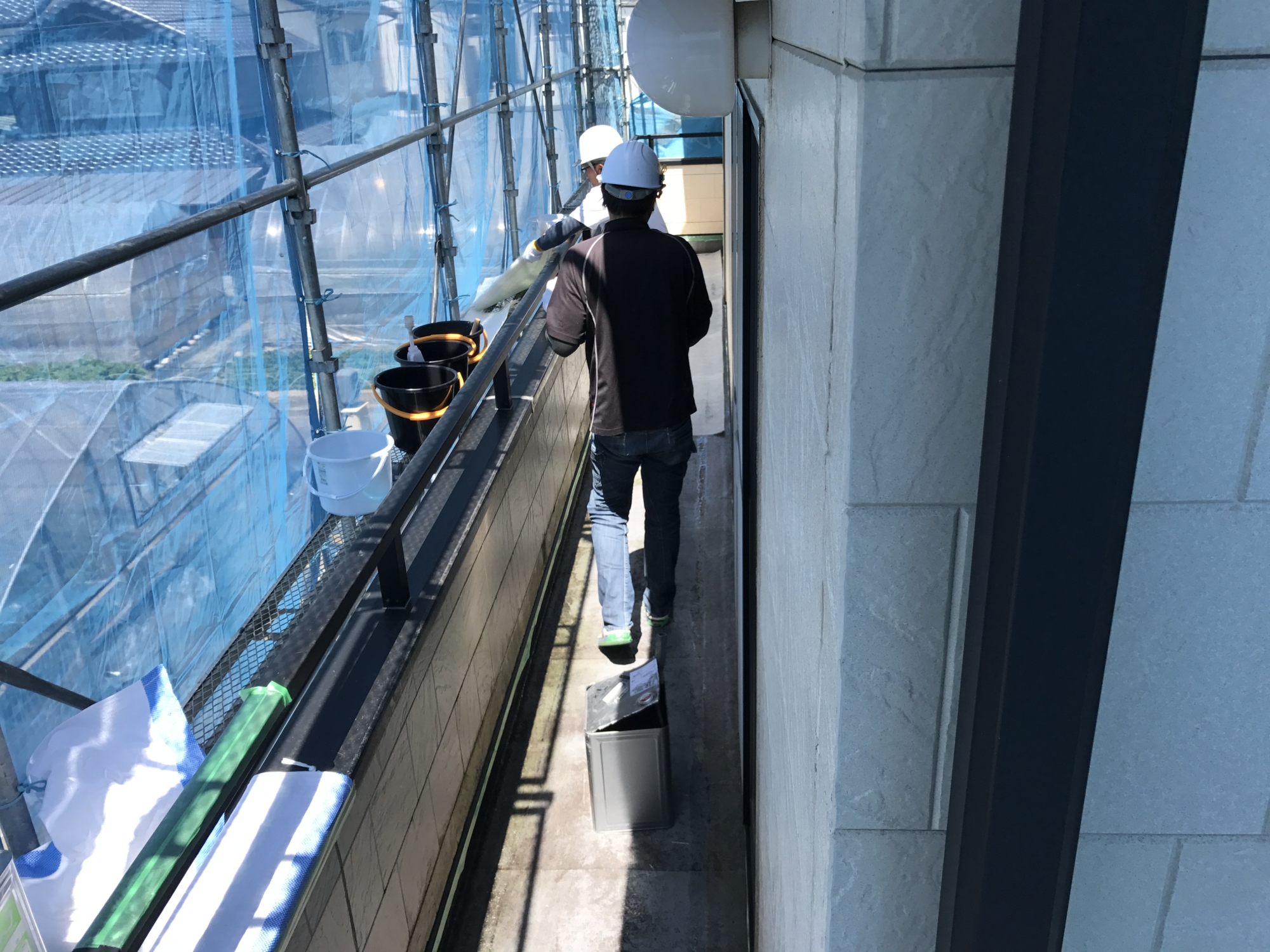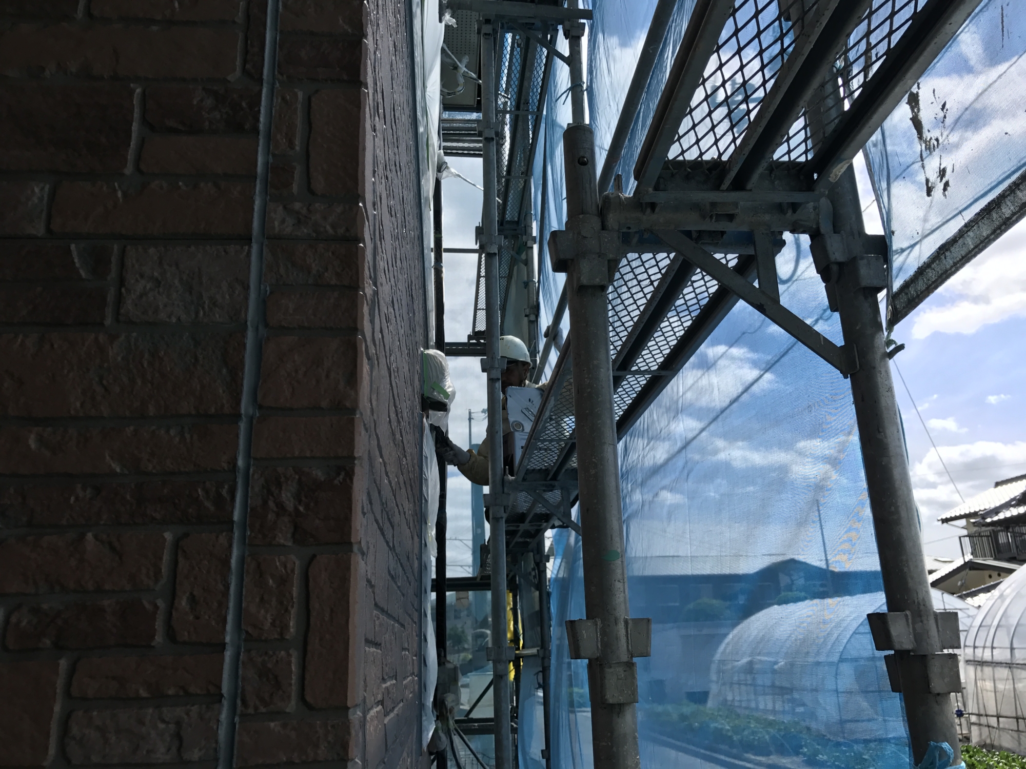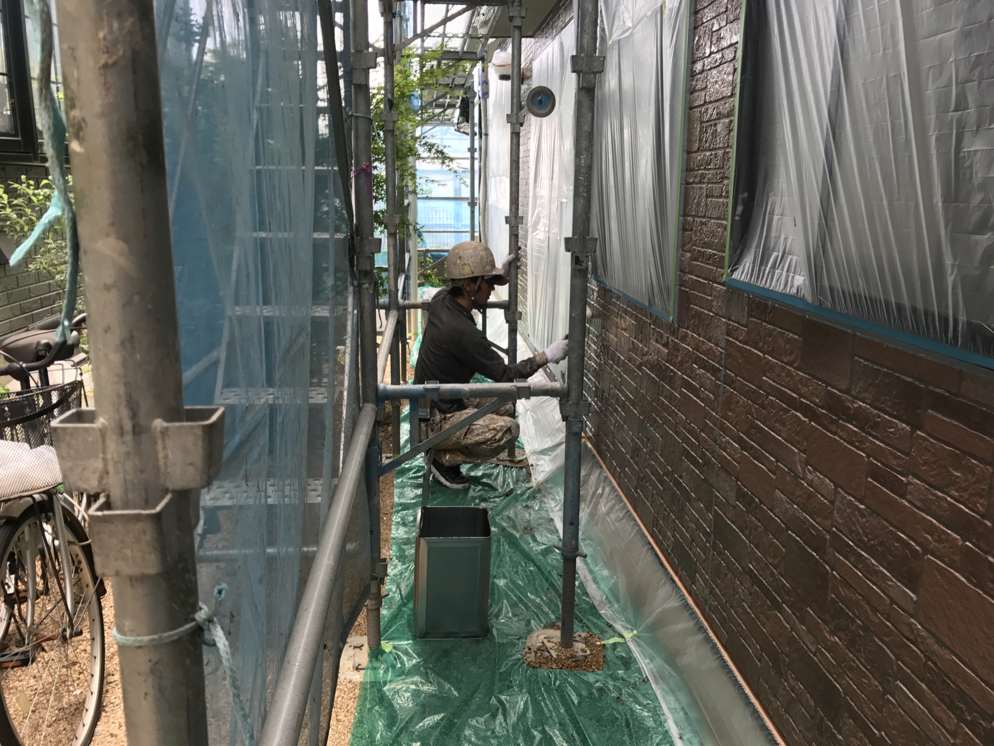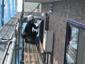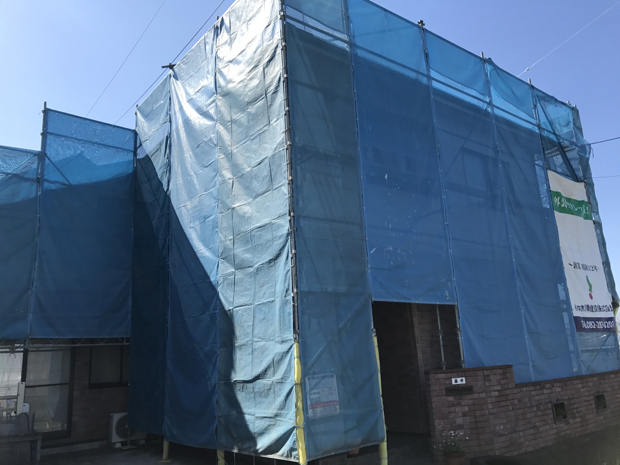 こんにちは。立花です。 今週から外部改装工事が安佐南区の川内で始まりました。 今週は、足場工事やベランダの防水工事をしました。