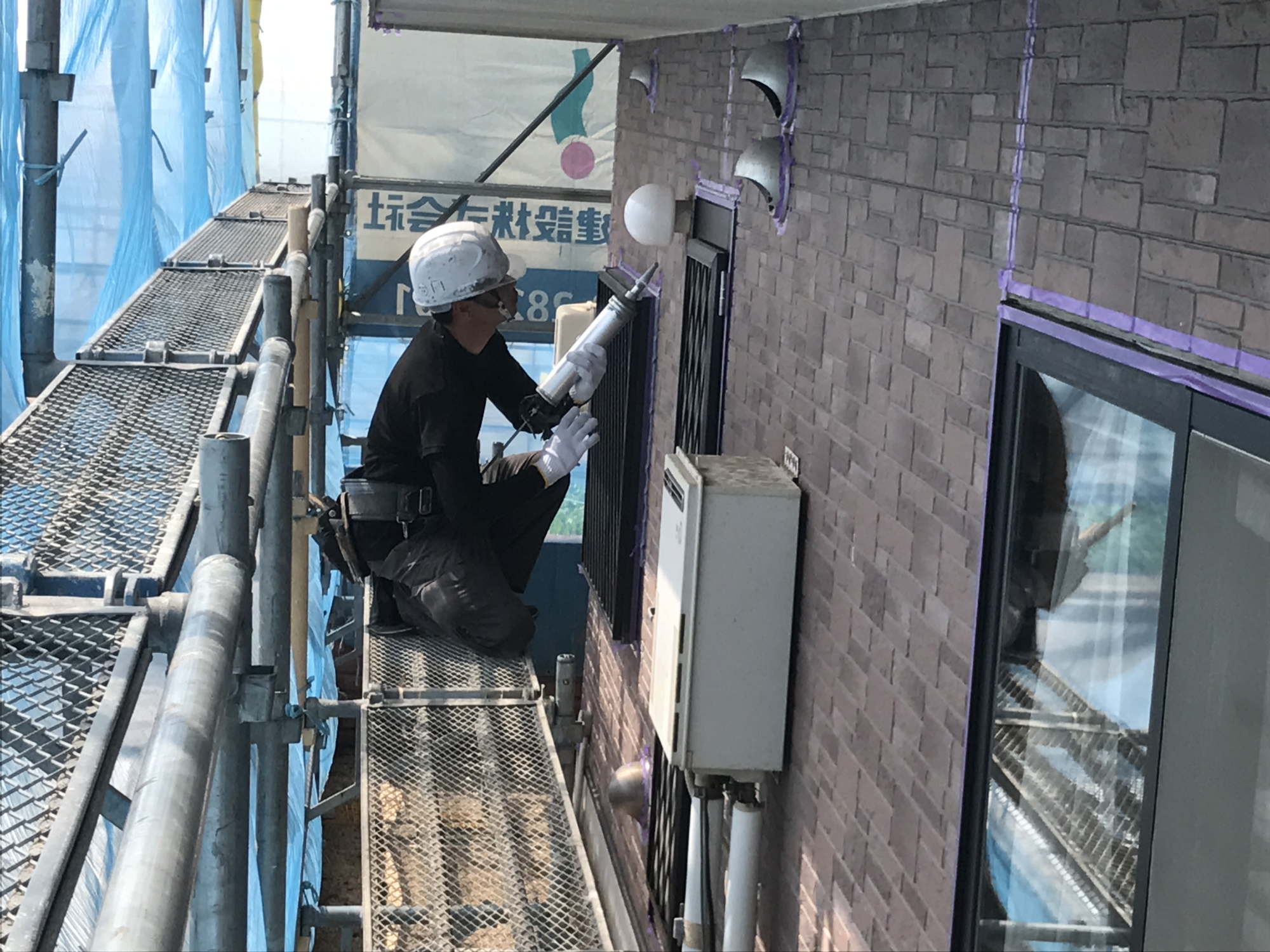 こんにちは。立花です。 安佐南区川内の現場は、今週からシーリング工事と塗装工事に入りました。 月曜日に元々ついているシールをはがしてもらい、次の日にシールを打ってもらいました。