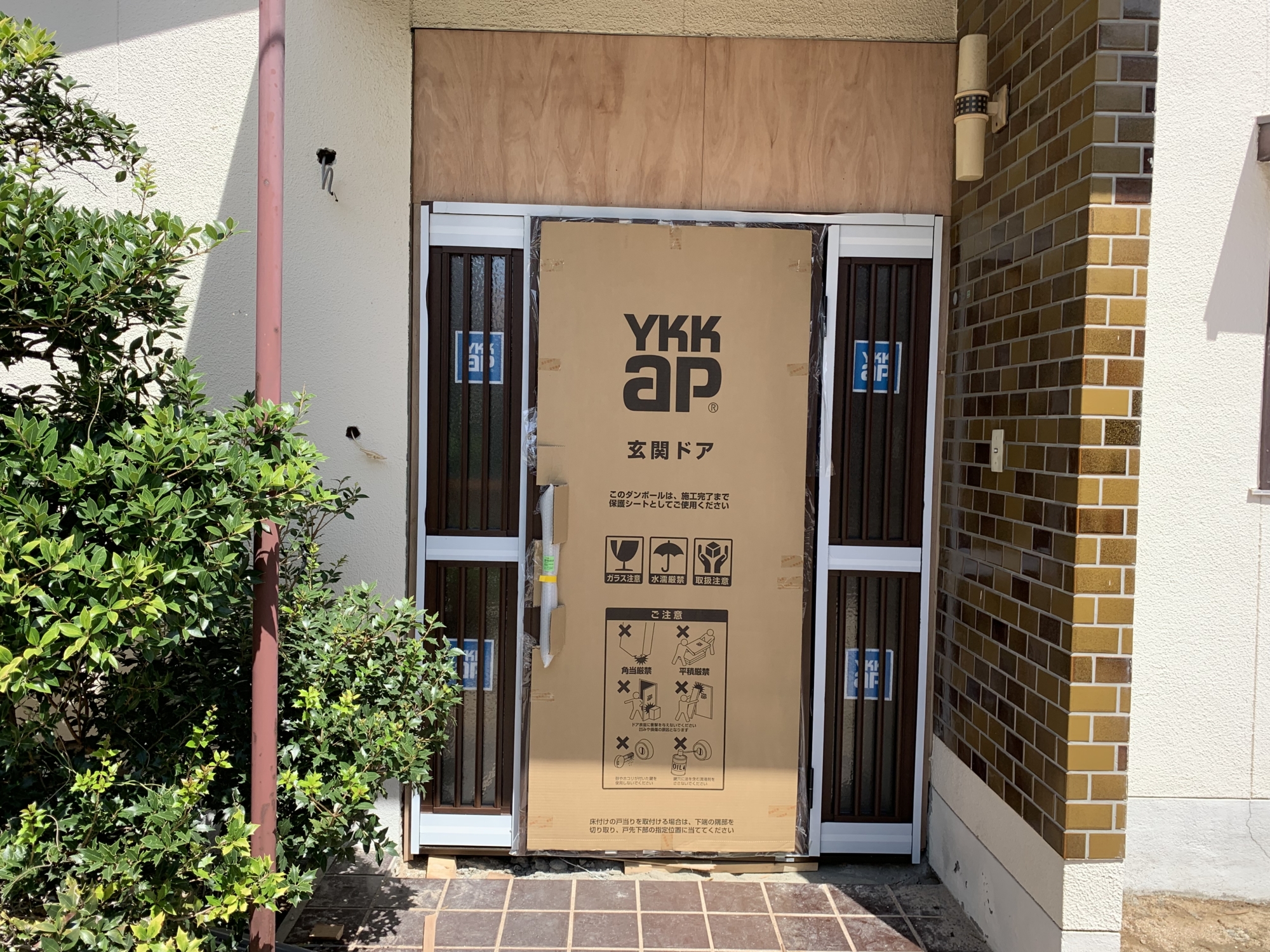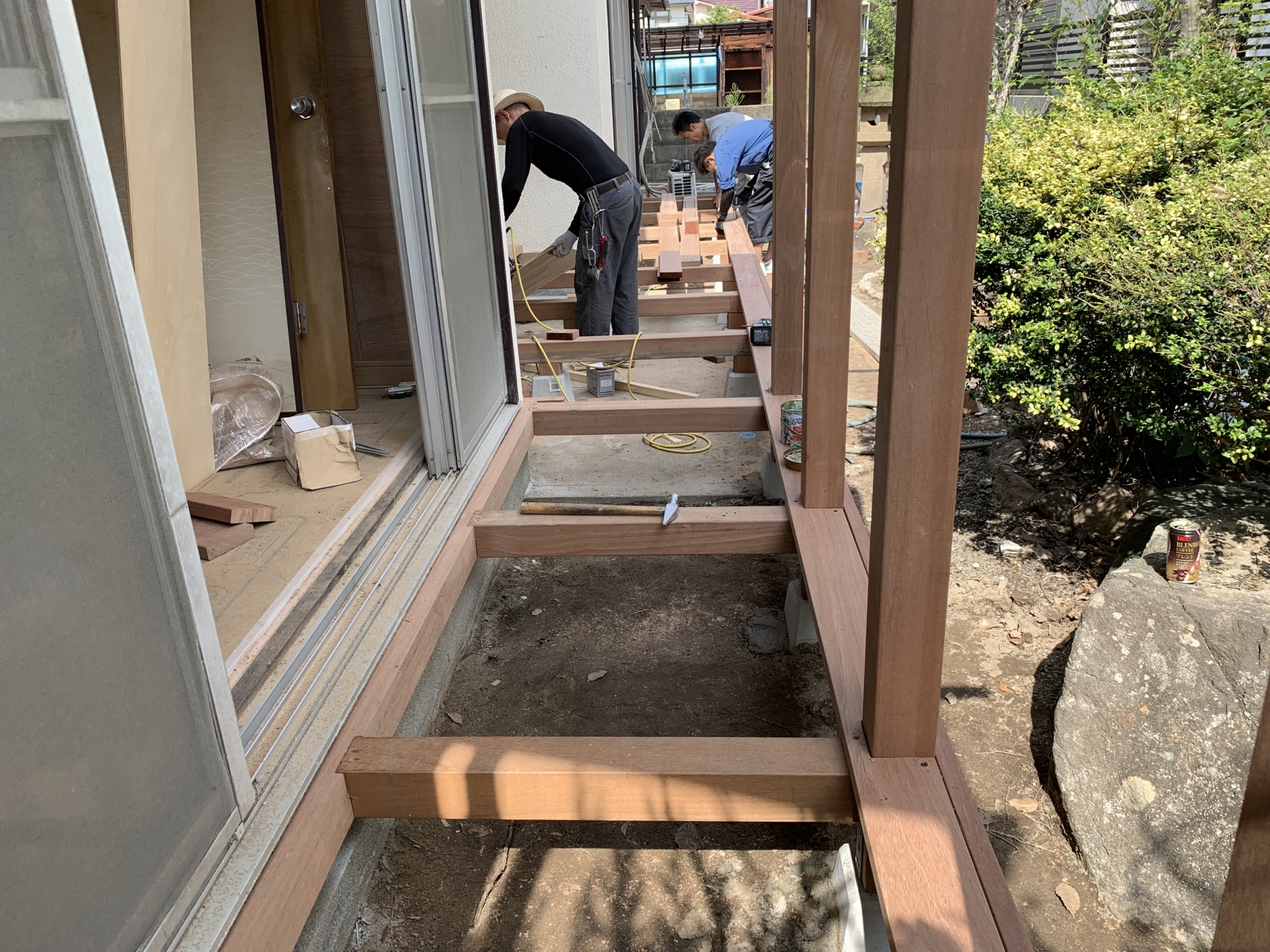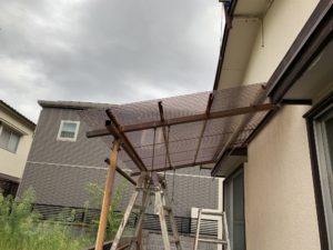 こんにちは。立花です。 庚午中M様邸改装工事ですが、 先週にはウッドデッキの製作をしてもらいました。 他にも軒裏や波板張りをしてもらいました 今週で大工工事が終了しました。 今週は玄関扉の取付も行いました。 来週にはキッチンの取付や内装工事をする予定です。