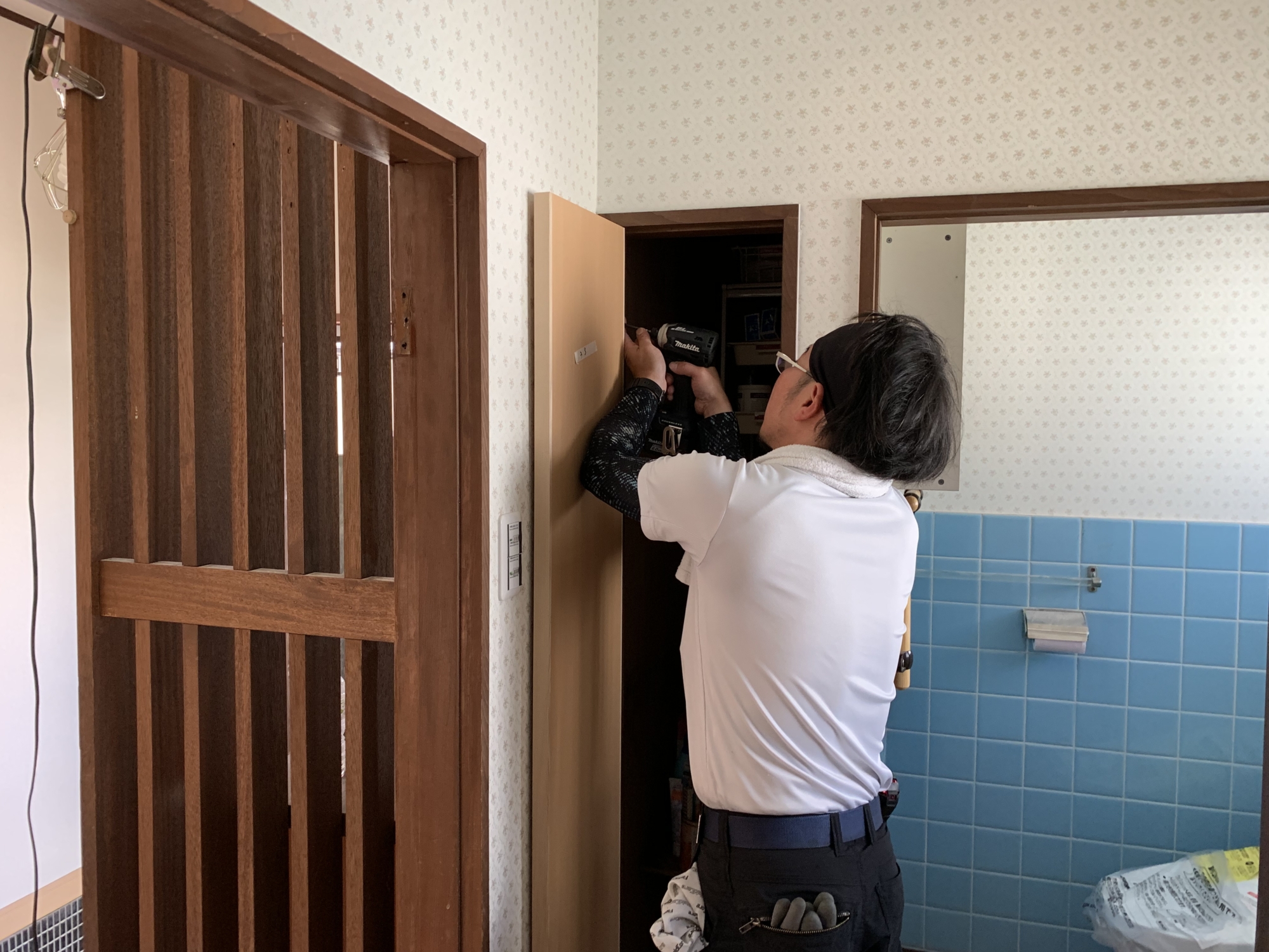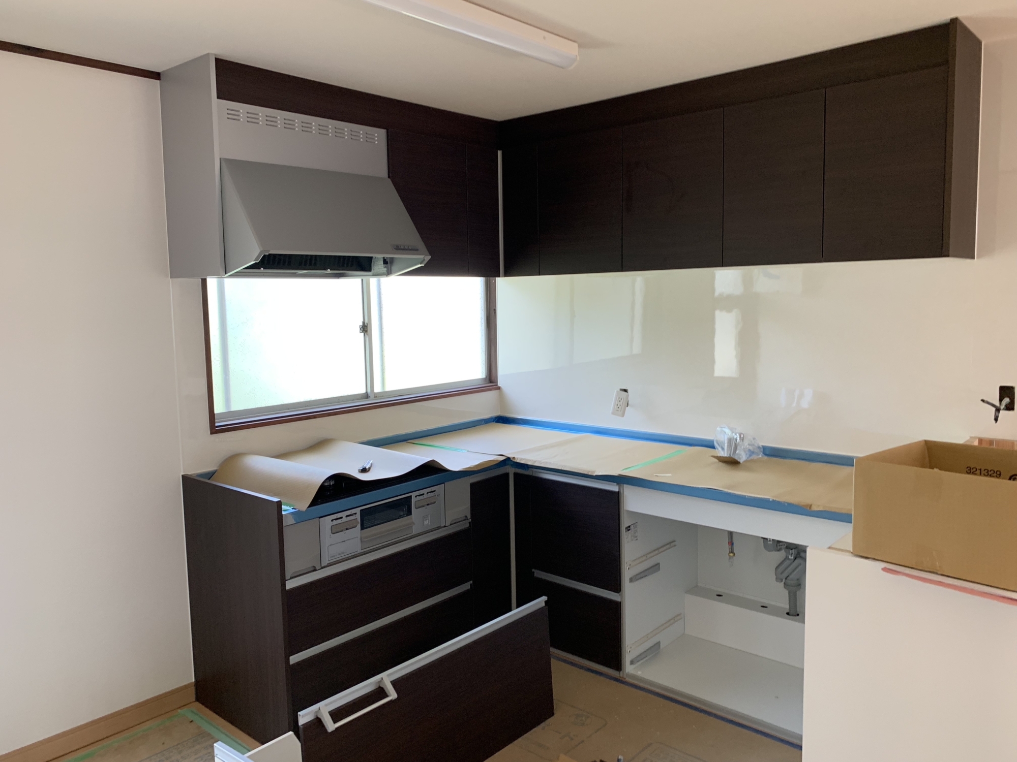 こんにちは。立花です。 庚午中のM様邸改装工事は、キッチンの取付を行いました。 他にも内装工事も行いました。 内装工事が終わったので、現在は器具付けを行っています。