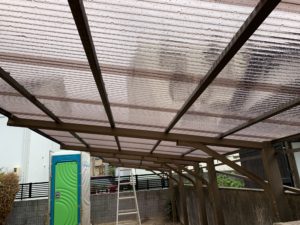 こんにちは。立花です。 庚午中M様邸改装工事は、器具付けや建具取付を行いました。 今週に入り、床の養生を引き上げ美装工事を行いました。 外部では、カーポート等の波板を張りました。 今週の土曜日が引き渡し予定です。