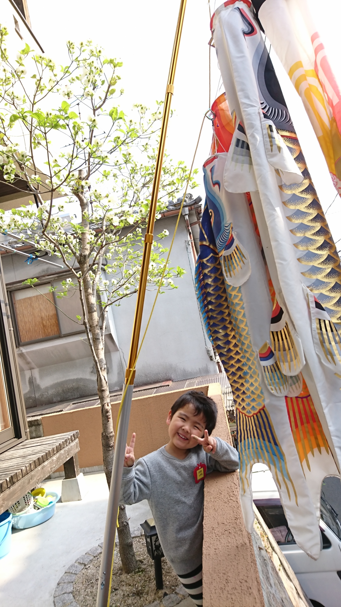 話をしてくれたので、我が家の鯉のぼりもおよがせてあげました!