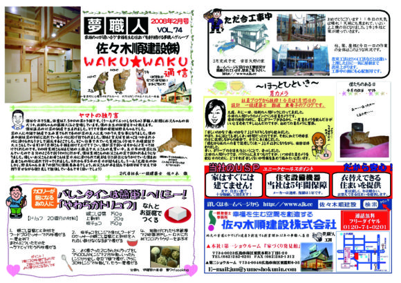 販促&広告HP担当の森本です。 家づくり発見館の大掃除に取り掛かっています。 ショウルームの本棚を整理していると、懐かしいものが出てきました。 弊社が発行しているフリーペーパーの「夢職人」の古いものです。 上記の写真の上が10年前の2008年に発行したもの、下が一番最新のものです。 10年前にも看板犬リキのコーナーがあったんだな~ 現在夢職人も148号まできました。 どこまで行くのでしょうか? 夢職人が欲しい方は送付致しますので下記にアクセスしてお申し込みくださいね。 資料請求へ Q.「広島には広島の家づくり」 広島で家を建てるために必要なことは? >>>> 「3時間で一生の得をしたと評判の住まい塾」へ Q.広島に家を建てる7つの秘訣は? >>> 「広島に家を建てる7つの秘訣」小冊子請求へ Q.「こんな家があるなんて!」こんな感想が寄せられる家を体験するには? >>>> 基礎工事体験会から完成工事まで様々なイベントをチェックへ