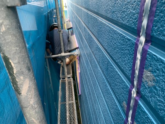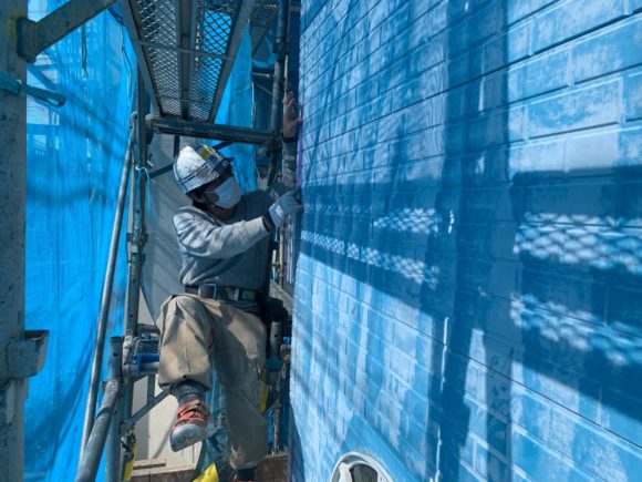 コーキング打等の作業が完了したので、塗装工事が始まります。
