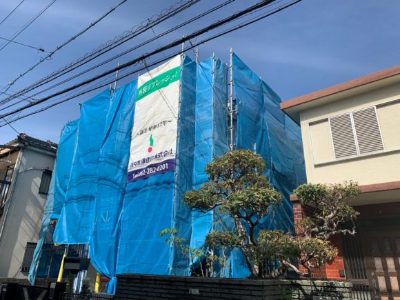 こんにちは。立花です。 翠町で平成元年に新築させて頂いたD様邸の外壁明装工事を行っています。 サイディング目地コーキングの打ち替えや外壁、屋根等の塗装を行います。 3/29から始まり、まず足場組みを行いました。