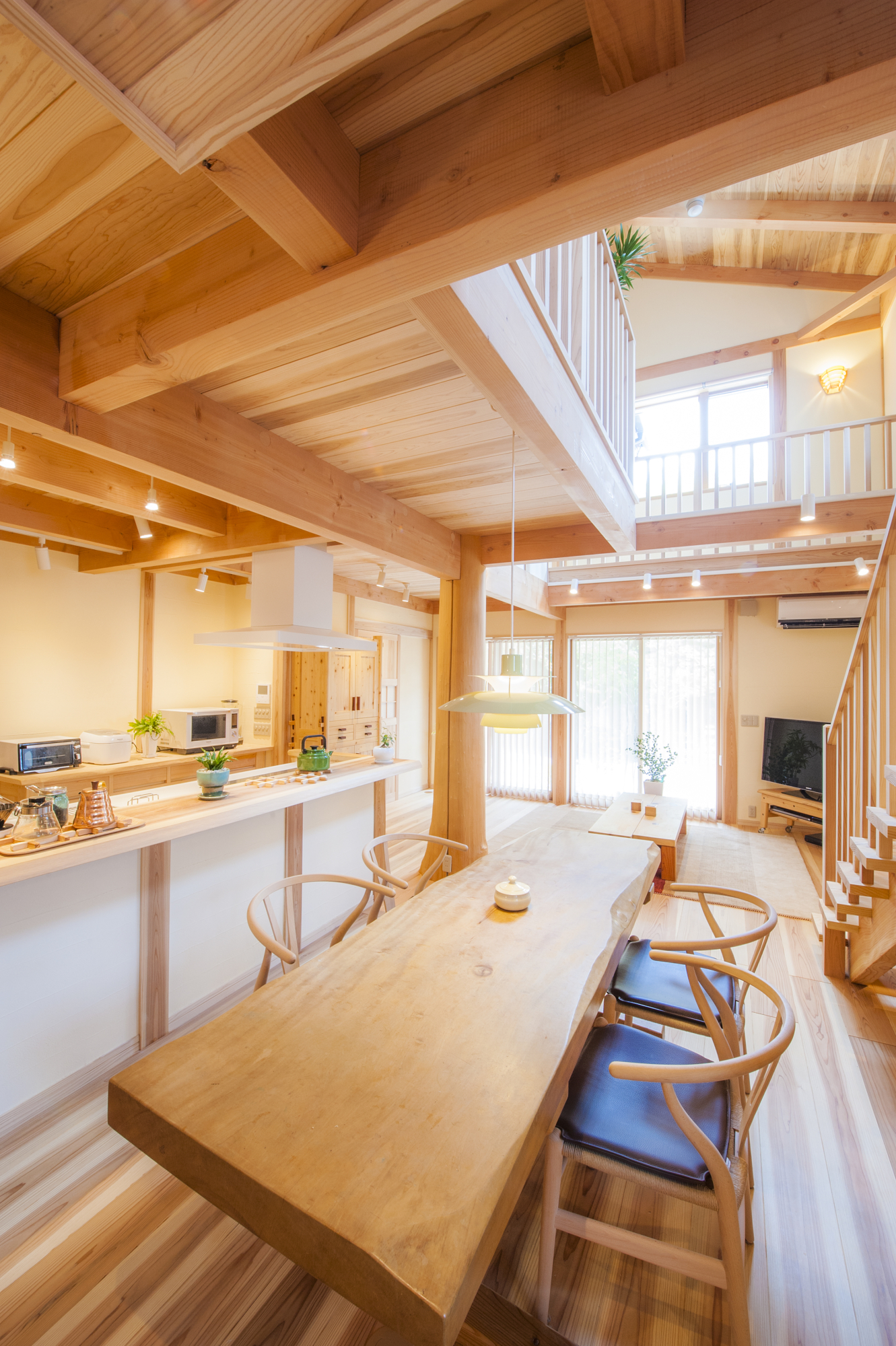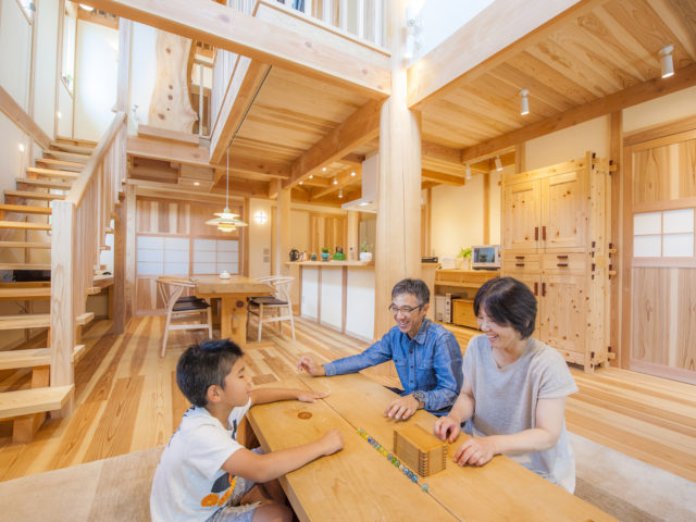 伝統工法の登り梁工法で大きな広がり空間を実現させた 無垢の木にこだわった家 広島 安芸区船越 M様邸